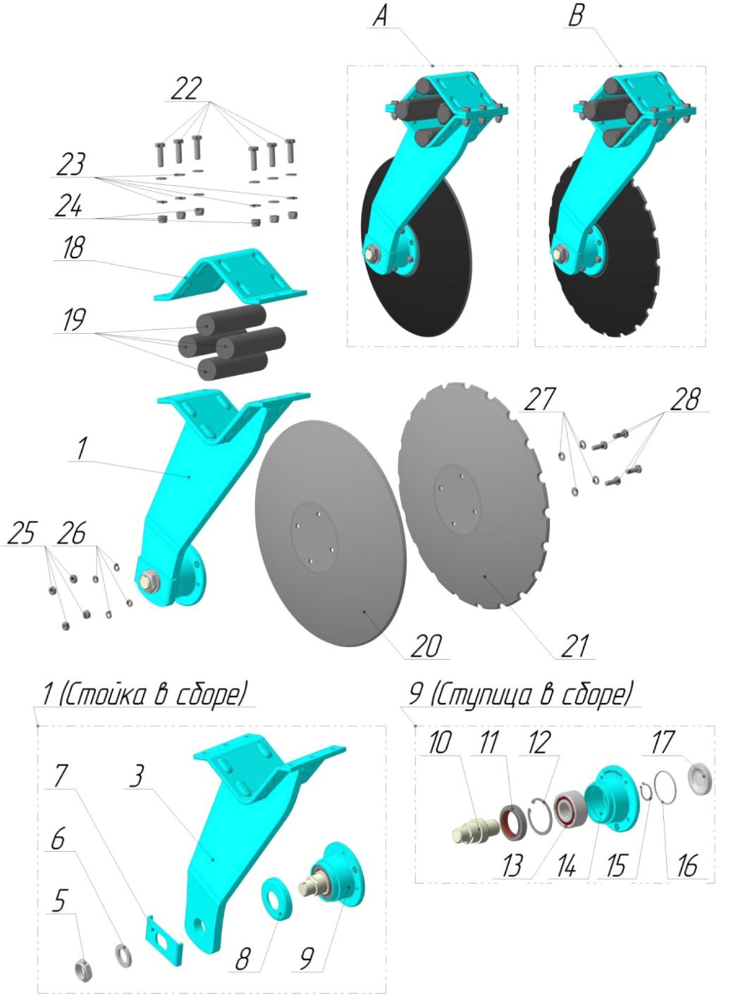 | Рабочий узел РУ-250 | РУ-250-100 00 00 00.000-03 | Передний ряд, диск с вырезом |