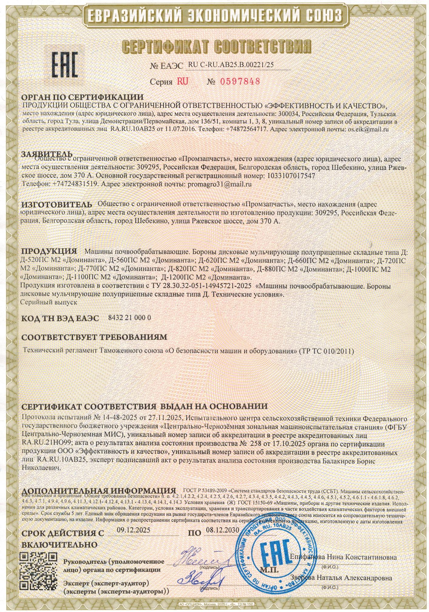 | Группировка в прайсе | 07. Бороны дисковые мульчирующие полуприцепные складные "ДОМИНАНТА" |