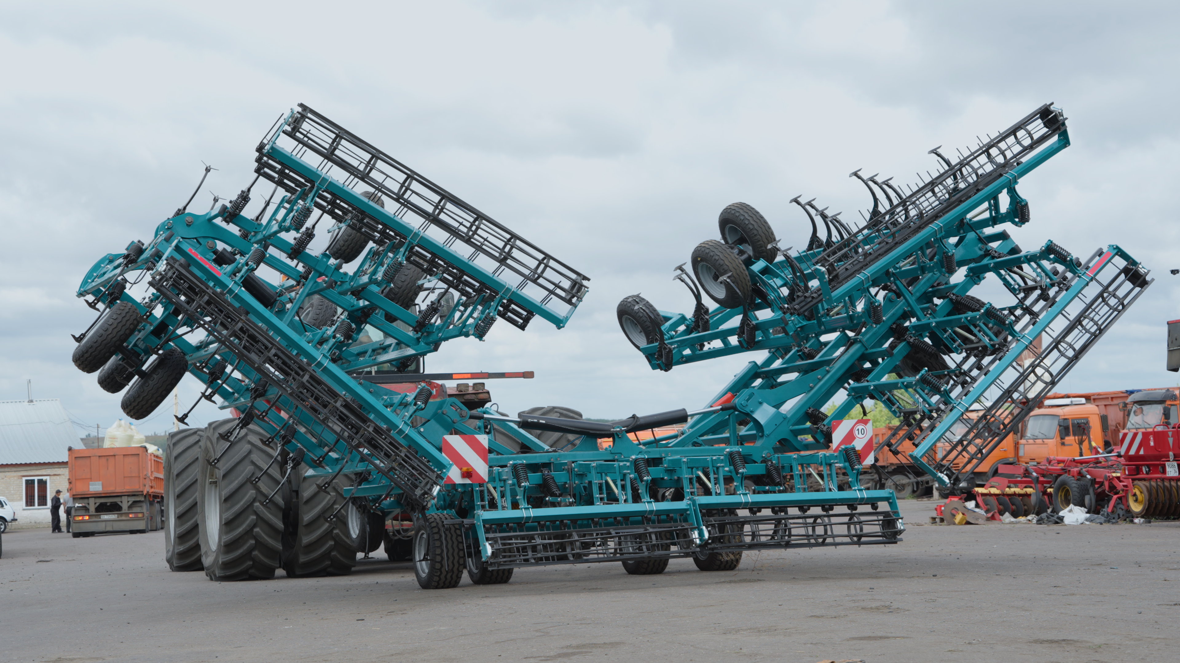 Комплекс предпосевной полуприцепной складной КП-10 М2 "Рубеж" трехрядная борона планчатый каток