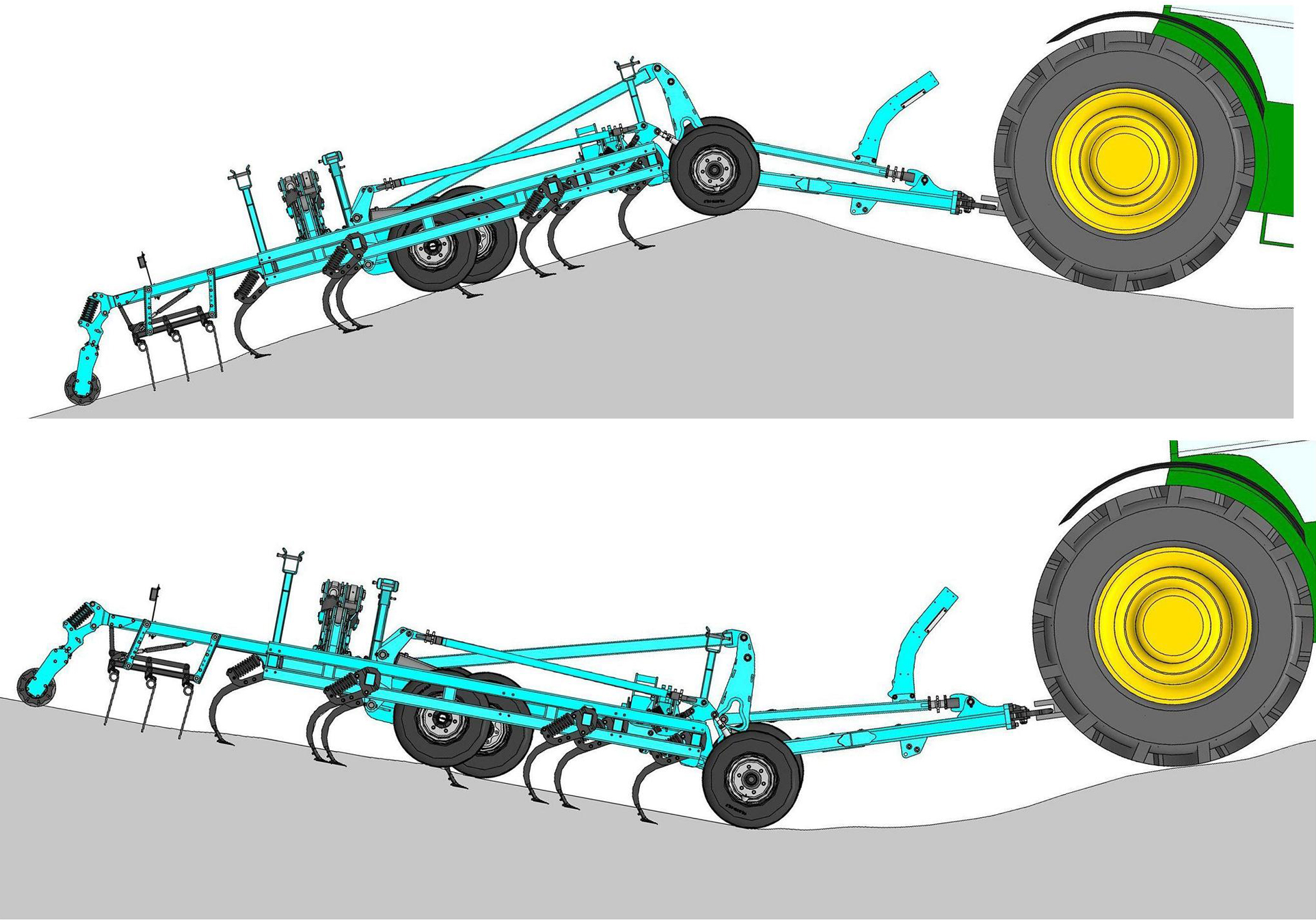 Плавающая сцепка в рабочем положении. Копирование рельефа почвы в продольном направлении.