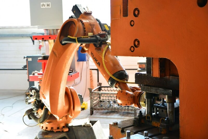 Установлено 9 промышленных роботов немецкого производства «KUKA», выполняющих сварочные и манипуляционные работы. Нашими специалистами при изготовлении деталей освоена комбинированная технология ориентации — тактильное ощупывание совместно с лазерным зрением. На производстве функционируют 3 роботизированных участка.