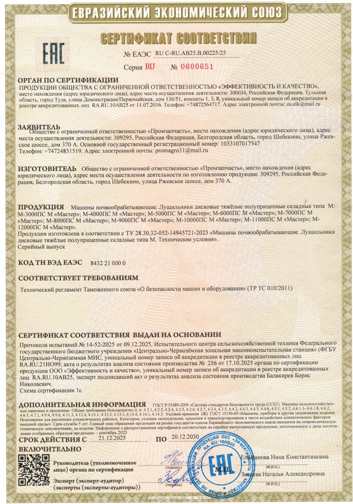 | Группировка в прайсе | 09. Лущильники дисковые тяжелые полуприцепные складные "МАСТЕР" |